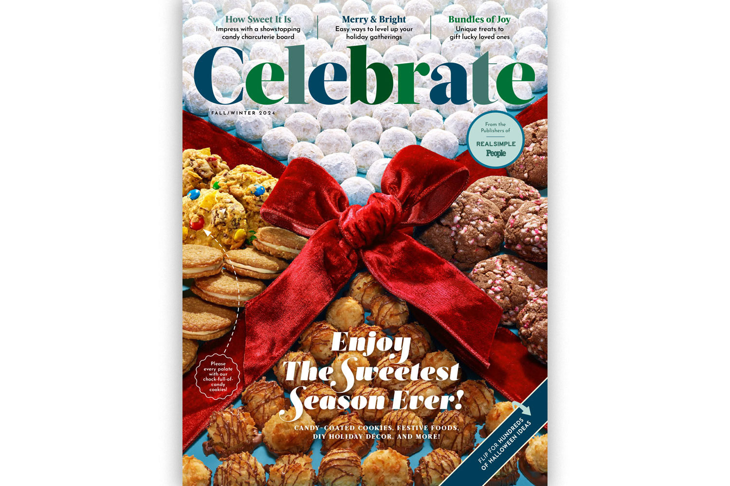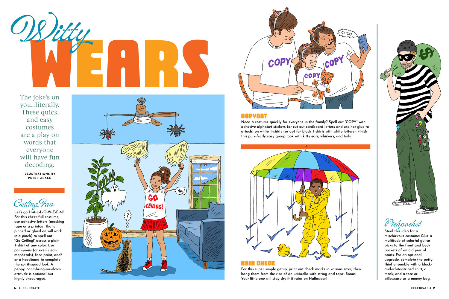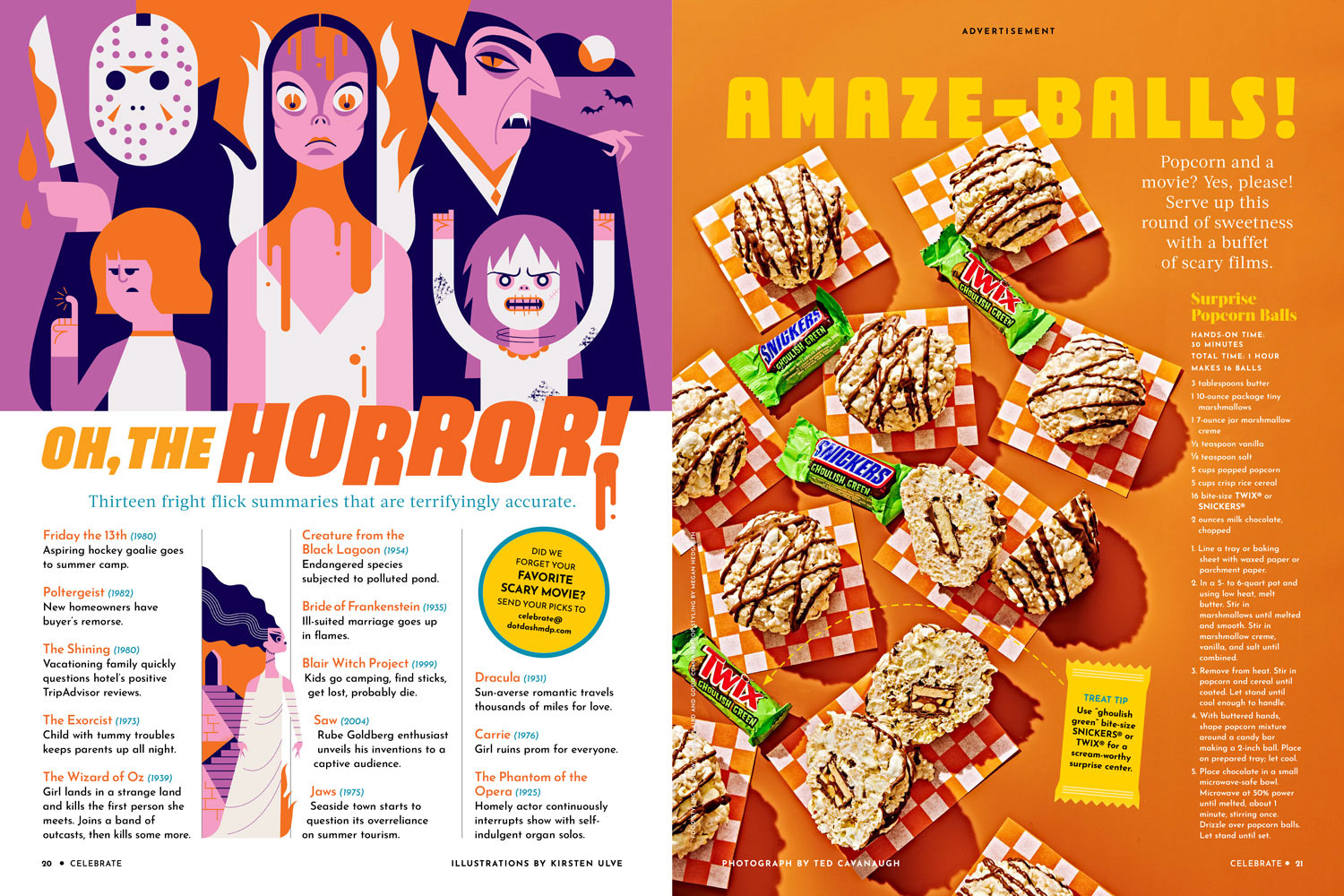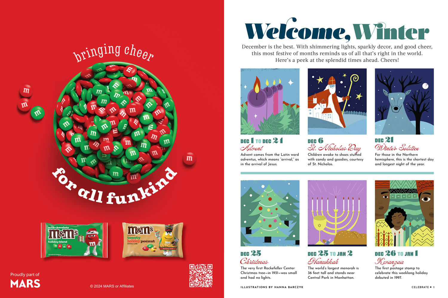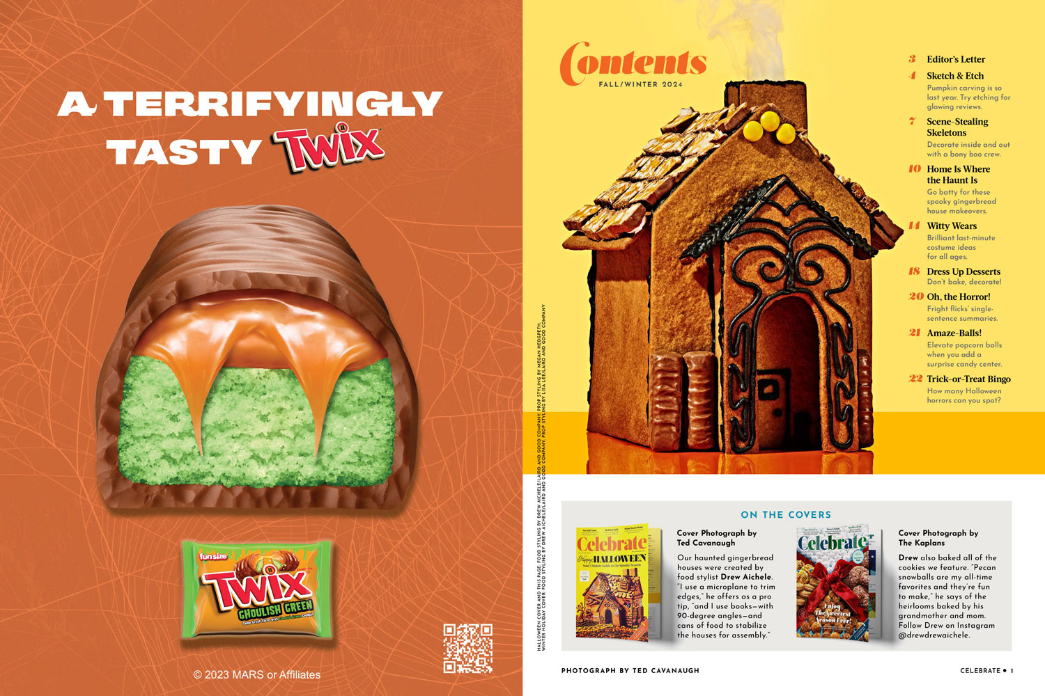 Flip book design: Halloween on one side, Winter Holiday on the other