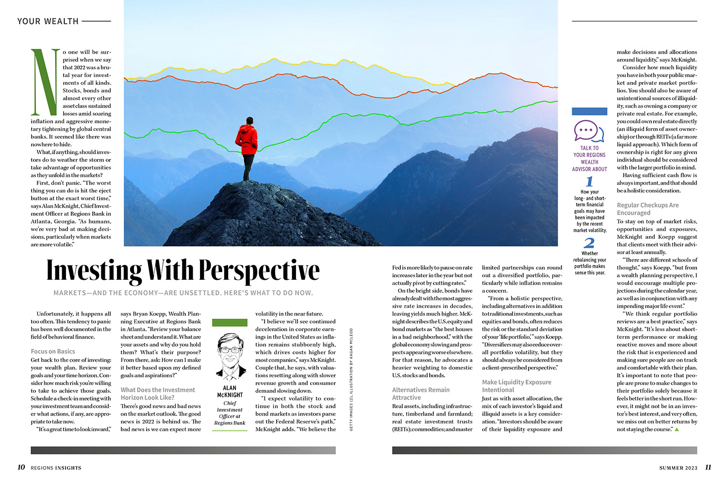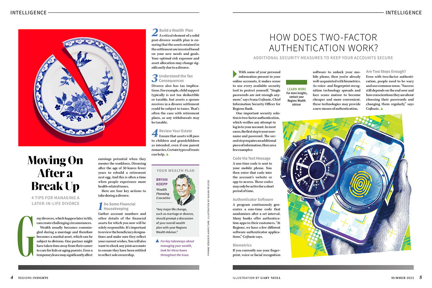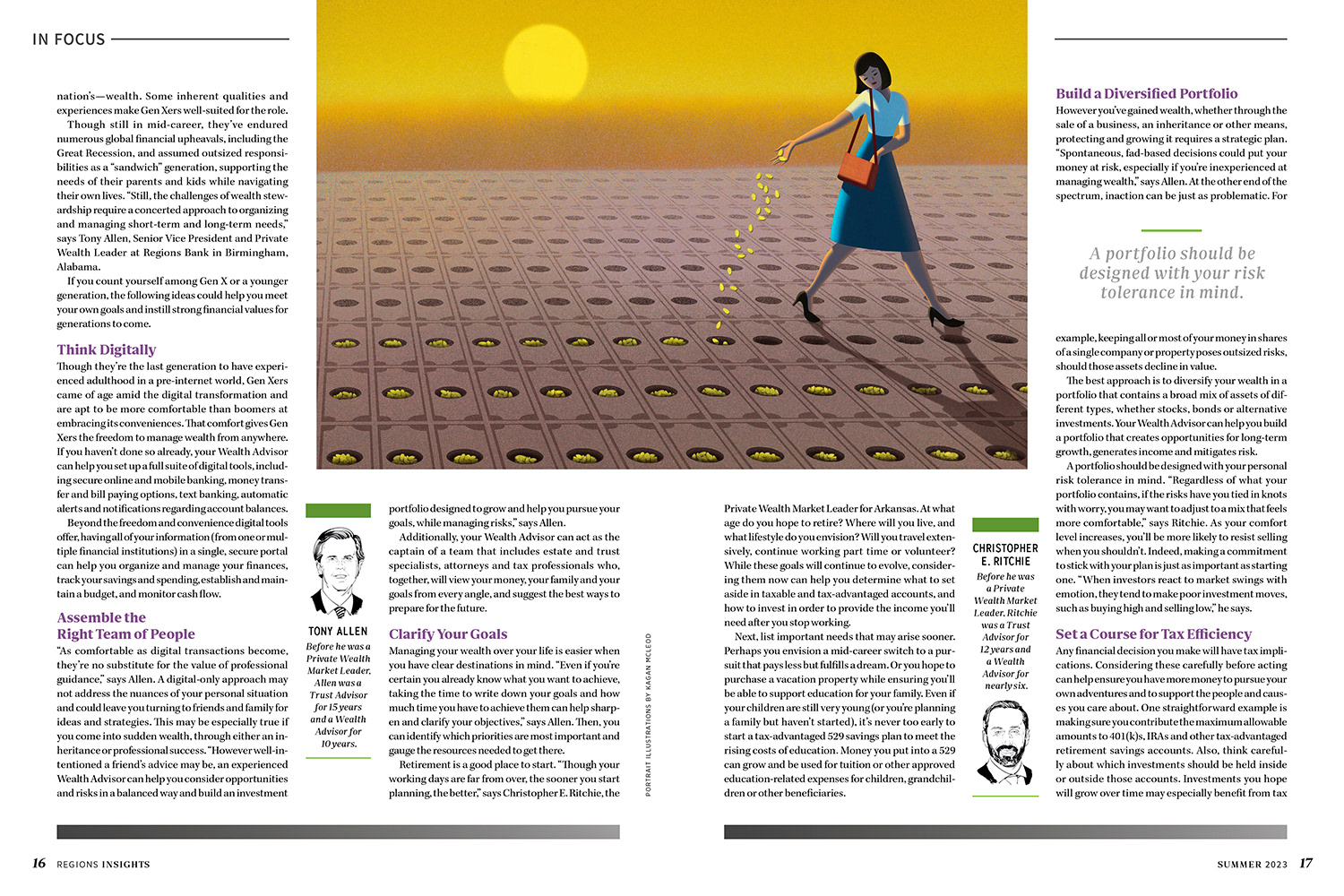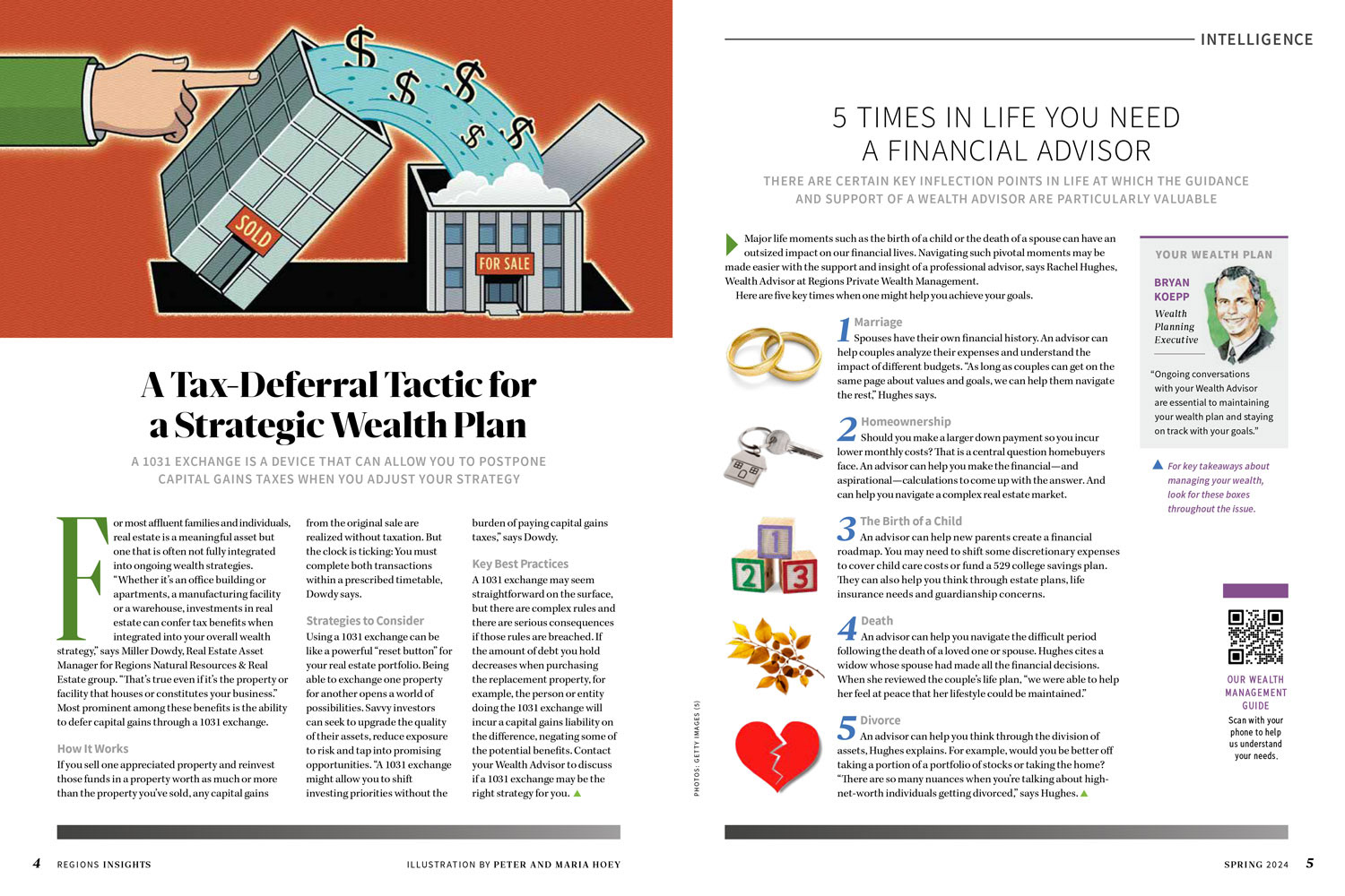Redesign Cover and Spreads for Regions Insights Magazine (Private Wealth Management) Creative Director: Kory Kennedy Associate Art Director: Nicole Cioe Executive Creative Director: Jennifer Tuozzolo Photo Editors: Geoff Chadsey, Karissa Maggio