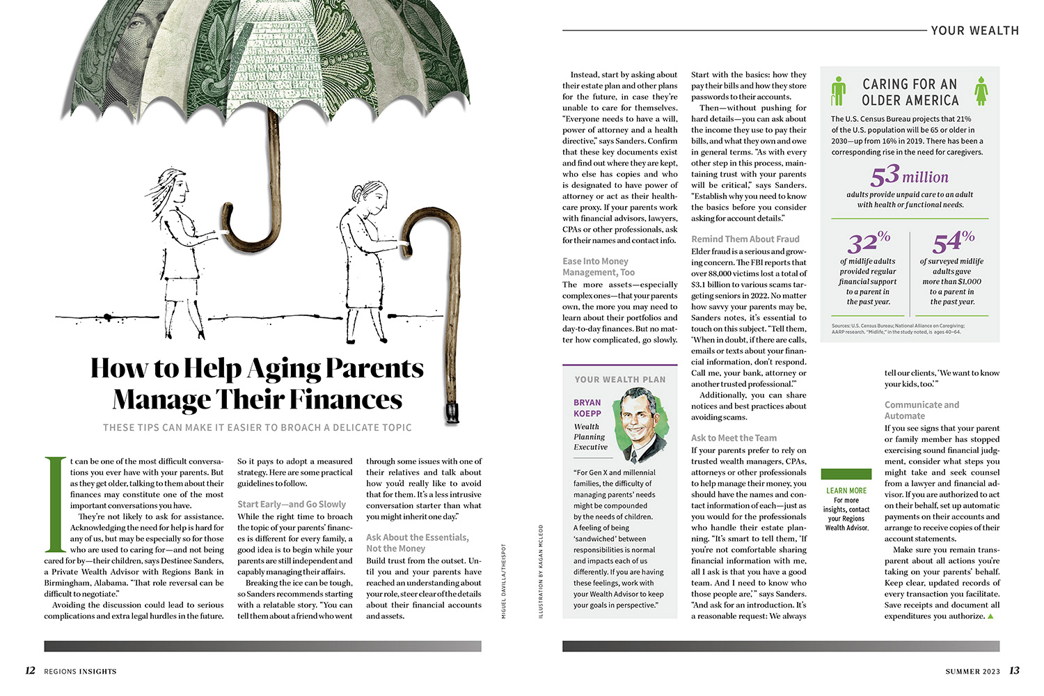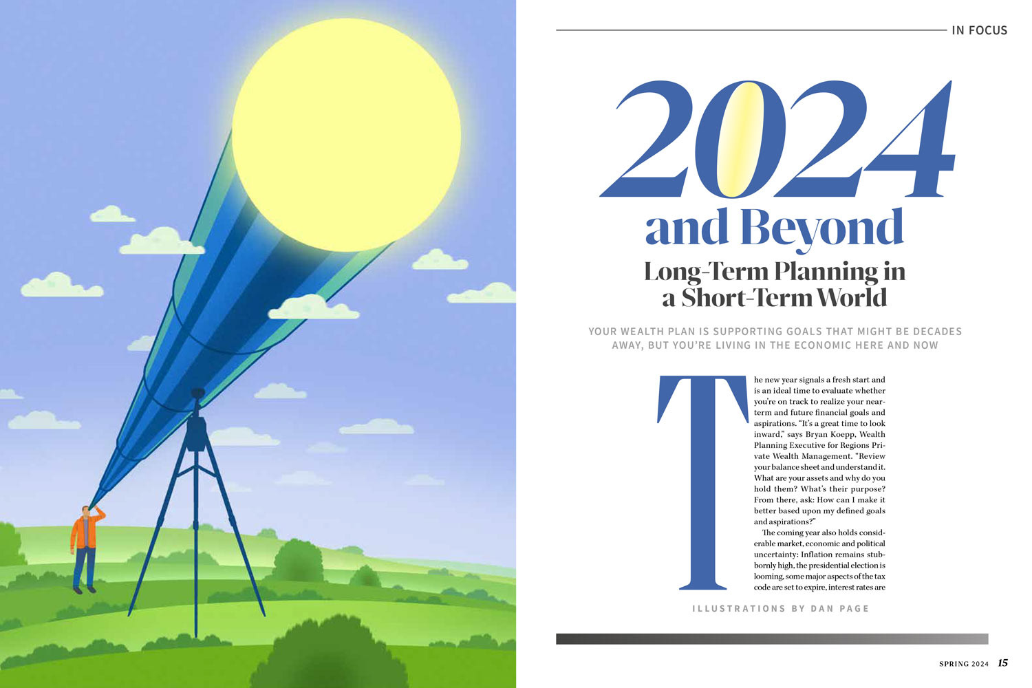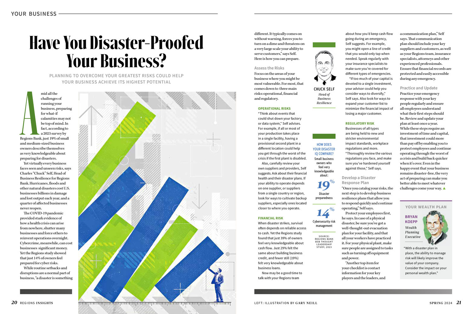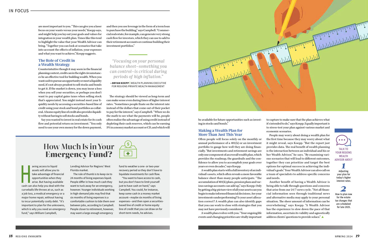Redesign Cover and Spreads for Regions Insights Magazine (Private Wealth Management) Creative Director: Kory Kennedy Associate Art Director: Nicole Cioe Executive Creative Director: Jennifer Tuozzolo Photo Editors: Geoff Chadsey, Karissa Maggio