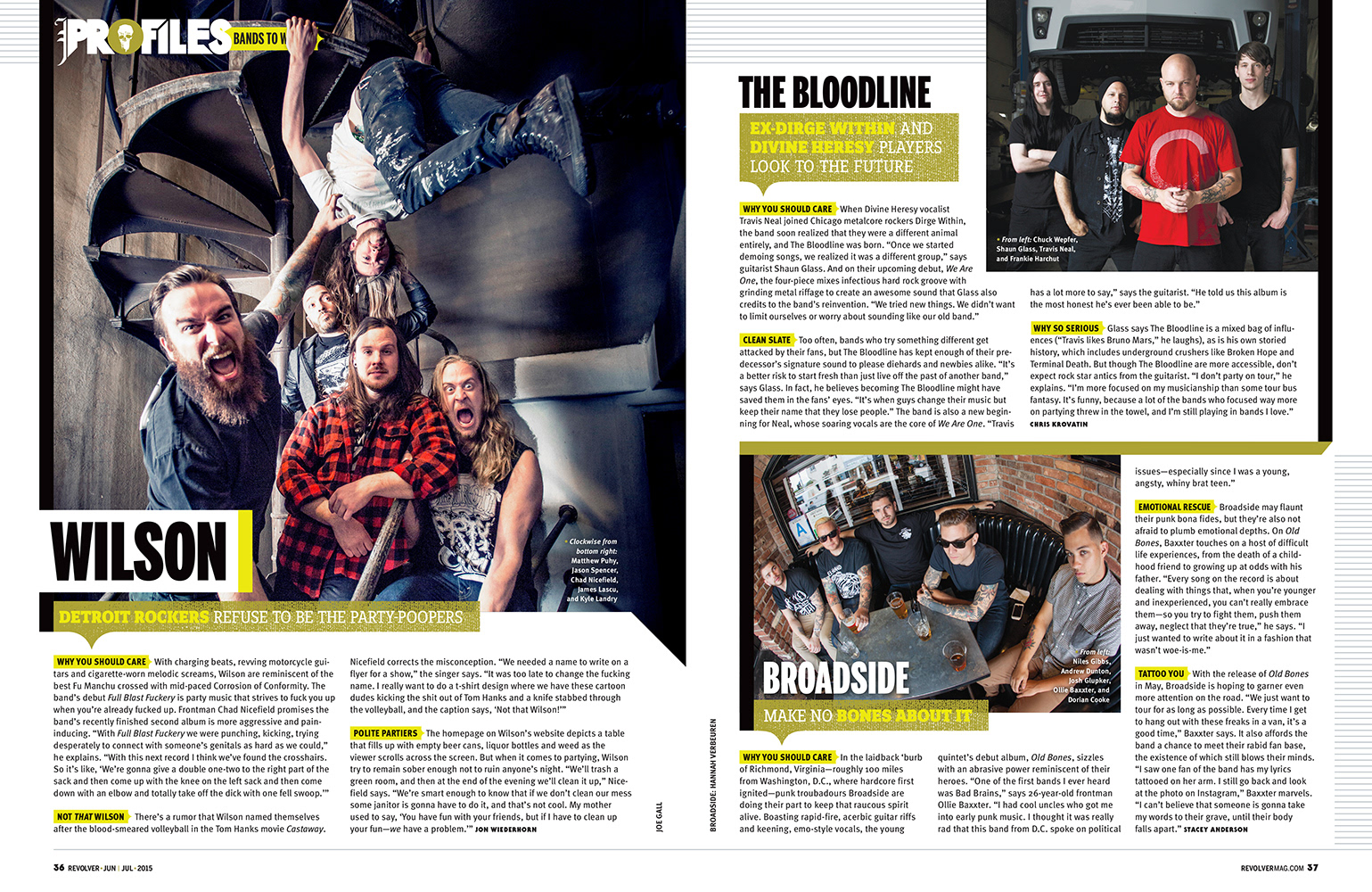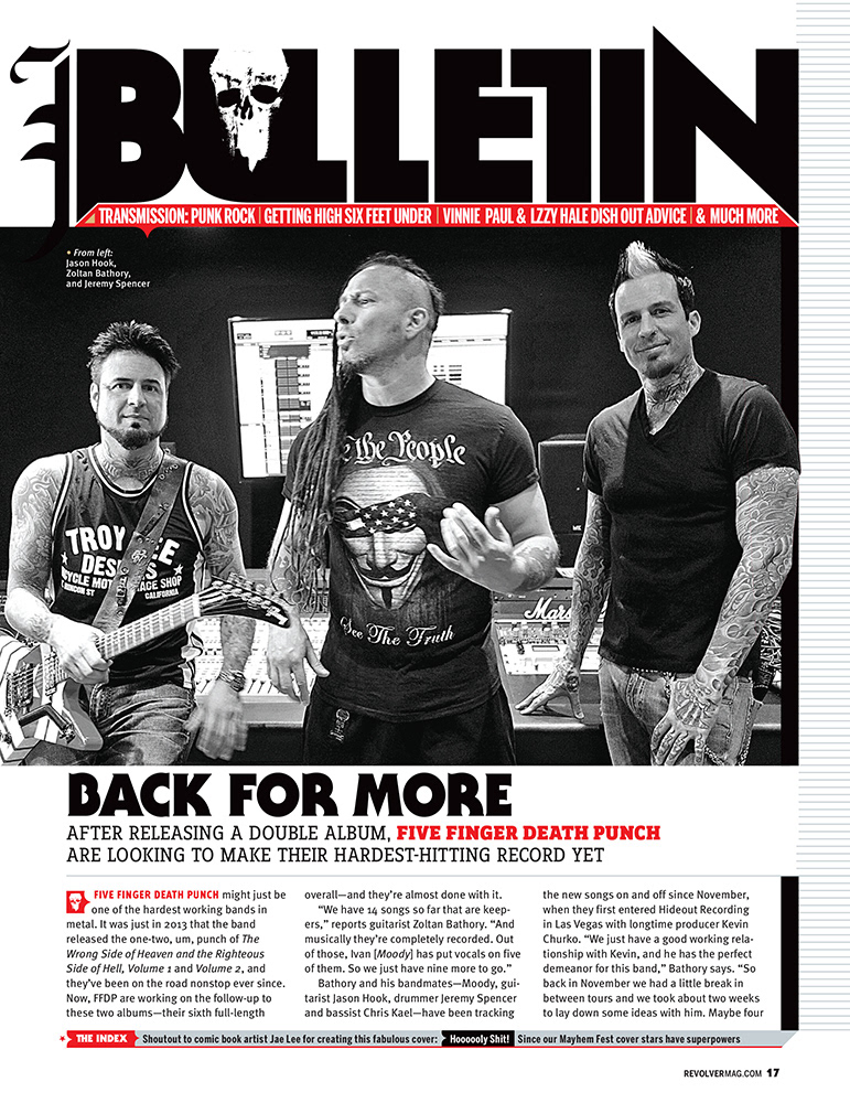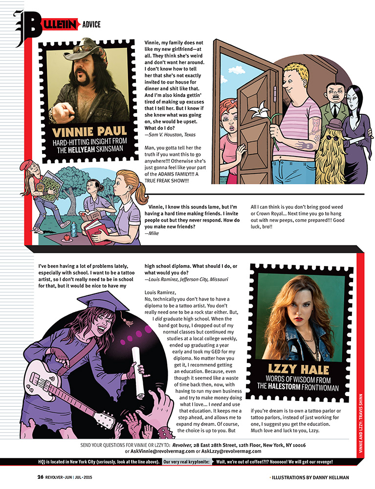 Department page designs for Revolver, a heavy metal music publication. Art Director: Kory Kennedy Editor: Sammi Chichester Illustration: Jacob Thomas, Danny Hellman With: Stephen Goggi, Jimmy Hubbard, Camille Murphy and Natalie Skopelja